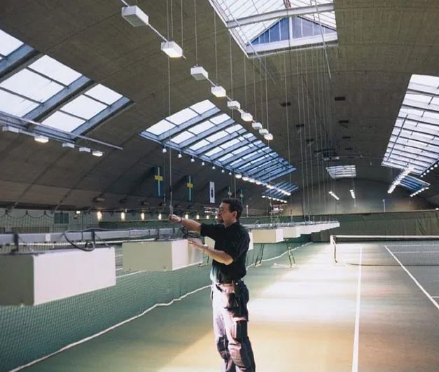 Ett typiskt scenario: armaturerna sitter 812 meter upp. För att nå dem måste personalen hyra in skylift, ordna avspärrningar, boka om träningar och kanske lägga skydd på golvet. Varje serviceinsats innebär därför inte bara hyreskostnad för lyftutrustningen, utan även slitage på golvet, ökad risk för skador och avbrott i verksamheten. I simhallar blir det ännu tydligare där kan man i äldre anläggningar behöva tömma hela bassängen för att komma åt armaturer ovanför vattnet.